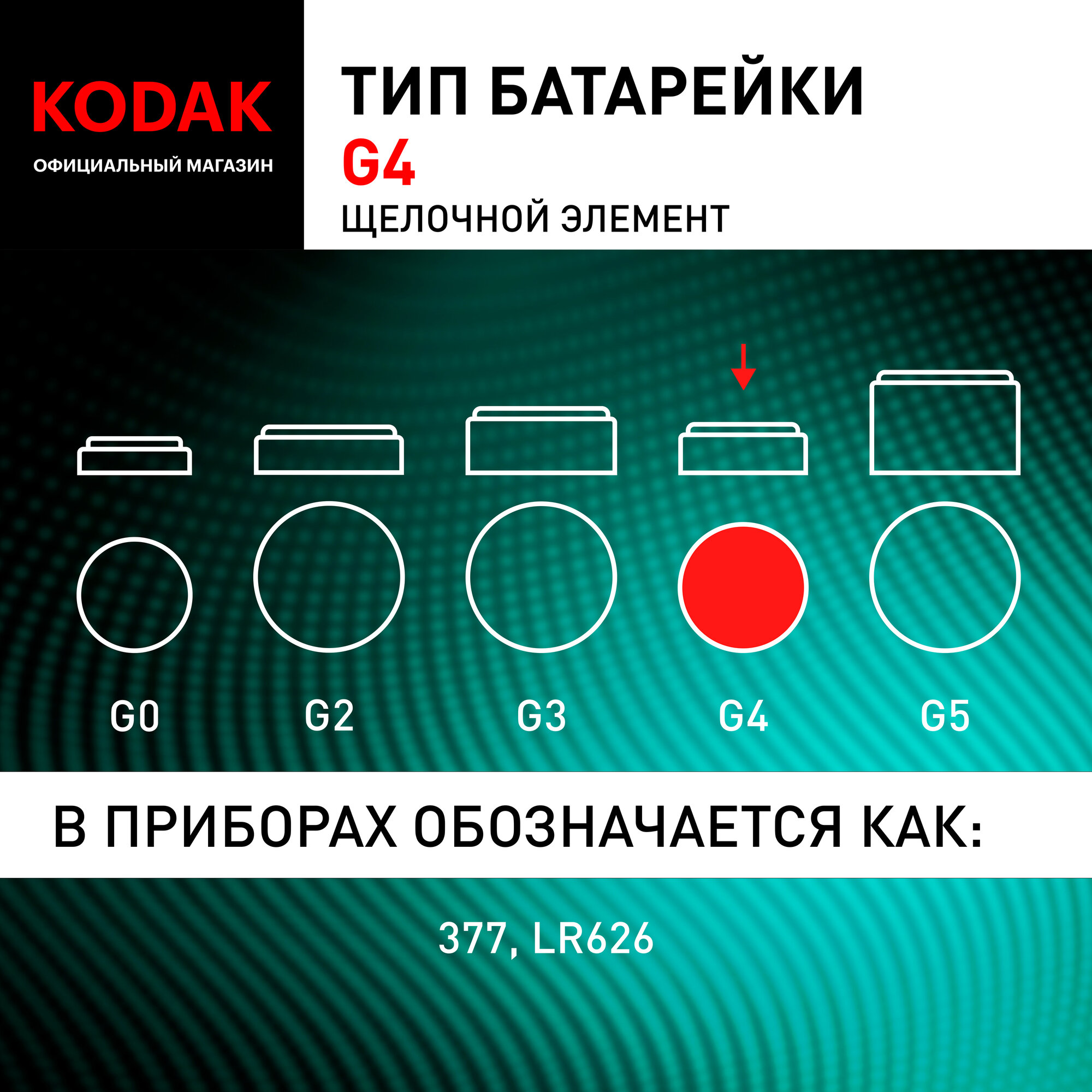Батарейка алкалиновая Kodak, AG4 (G4, 377, LR626, LR66)-10BL, 1.5В, блистер, 10 шт.