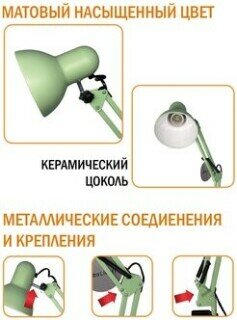Настольный светильник Ultra LIGHT МТ2001 сменная лампа, Е27, 60 Вт Основание + струбцина, Фисташка