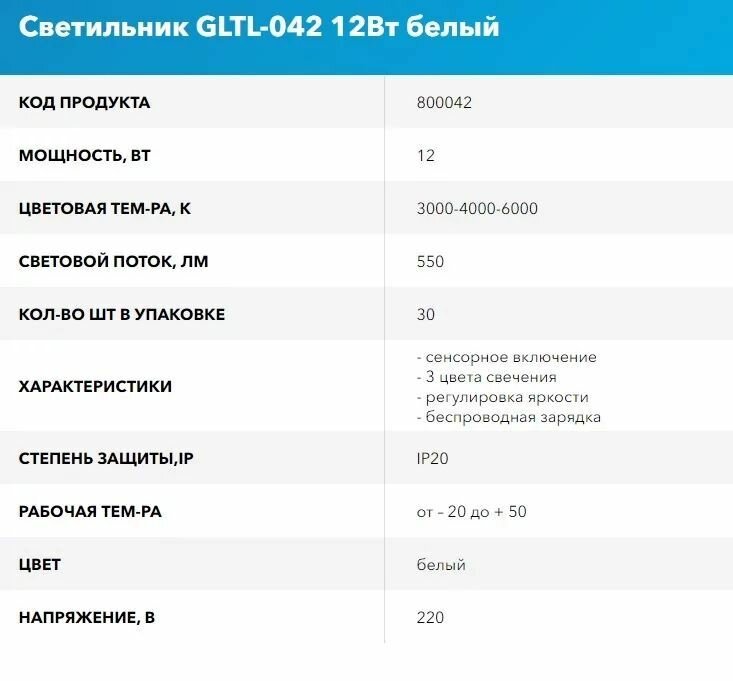 Купить General, GLTL-042 12Вт 550лм, белый, беспроводная зарядка смартфона (1/30)