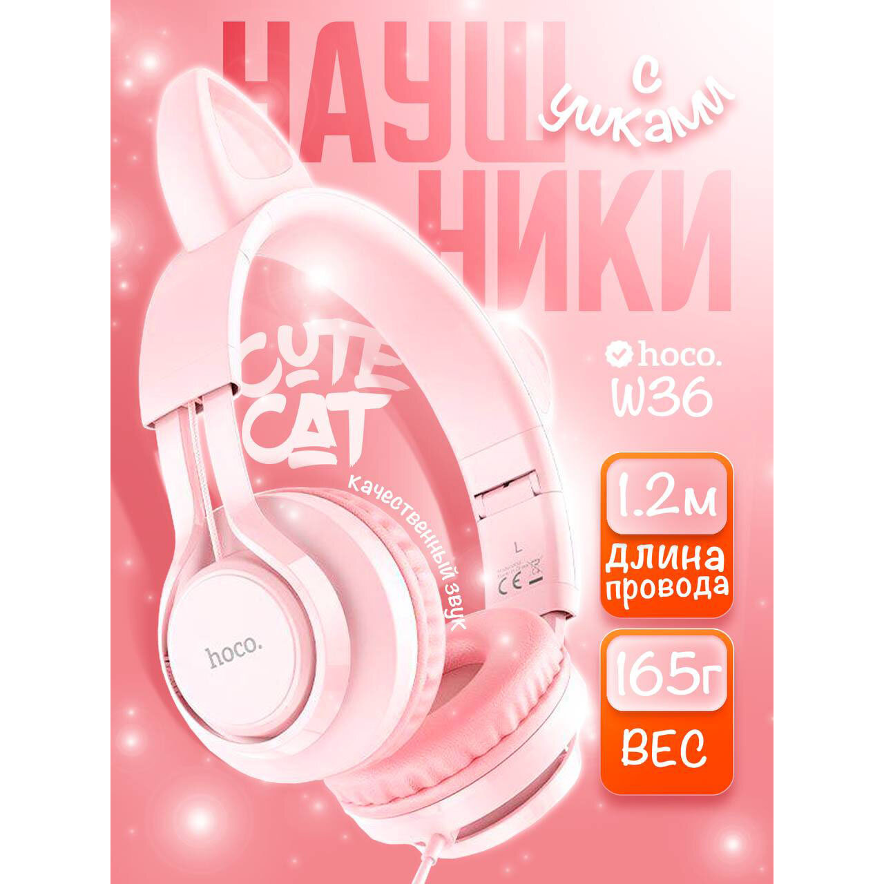 Купить Наушники Hoco W36, проводные, накладные, микрофон, 1.2 м, розовые Hoco 9881888