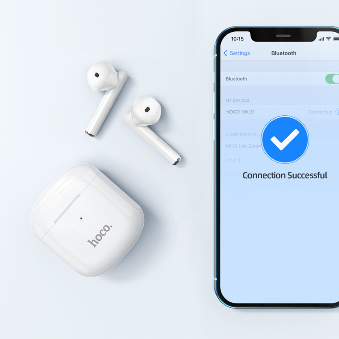 Bluetooth наушники вкладыши с микрофоном TWS Hoco EW19 беспроводная мобильная гарнитура, белые