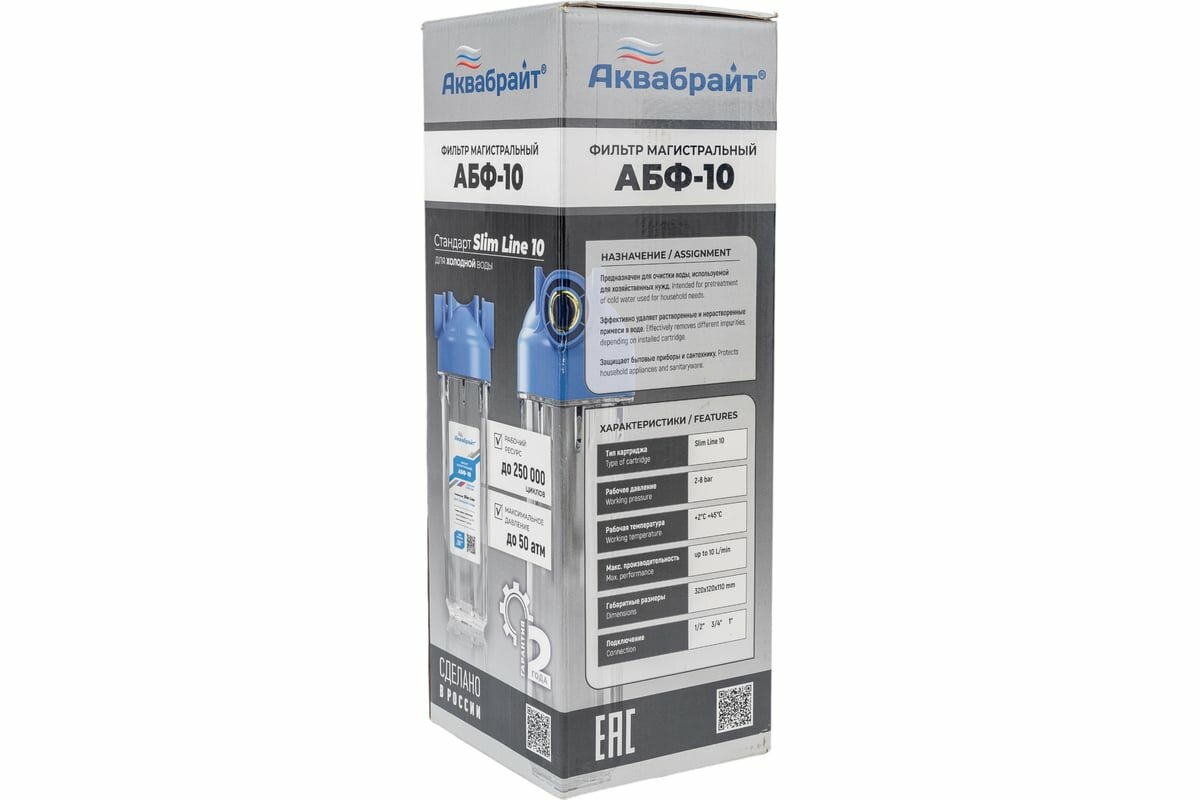 Фильтр магистральный Аквабрайт slim line АБФ-10-1 91289