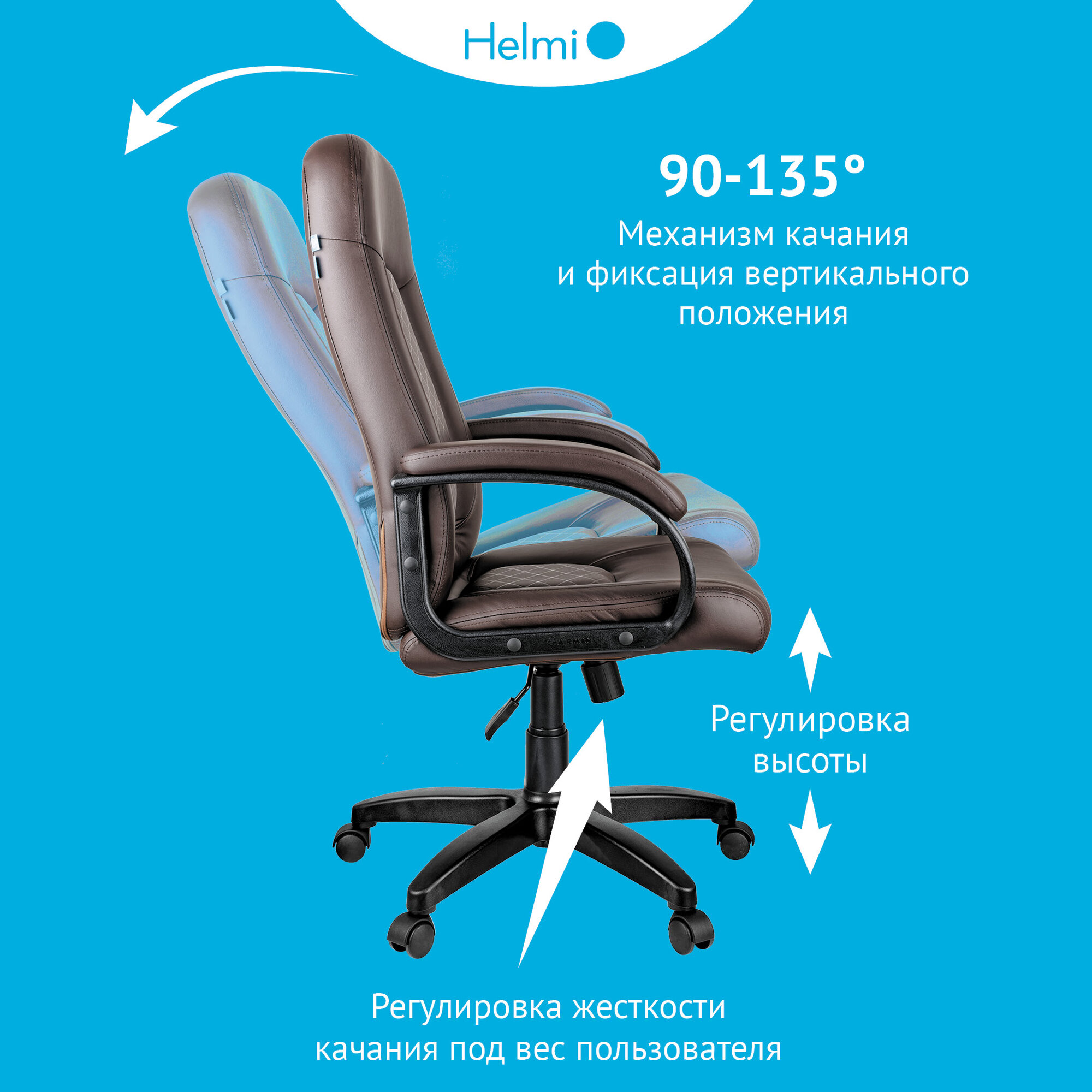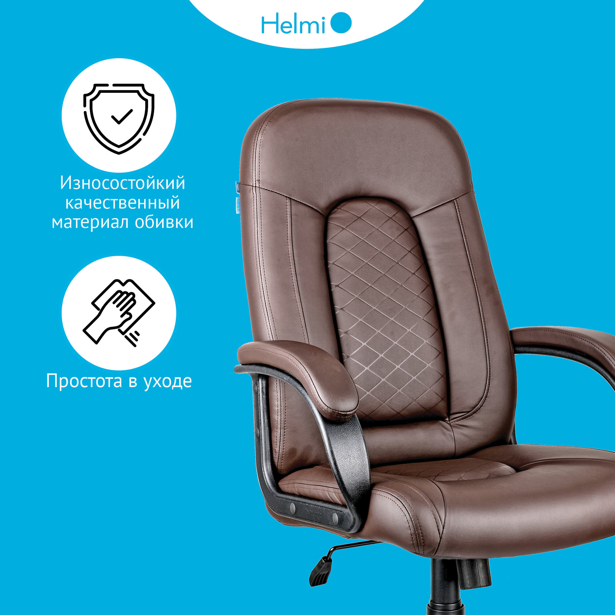 Кресло руководителя Helmi "Brilliance", экокожа коричневая, мягкий подлокотник (279847)