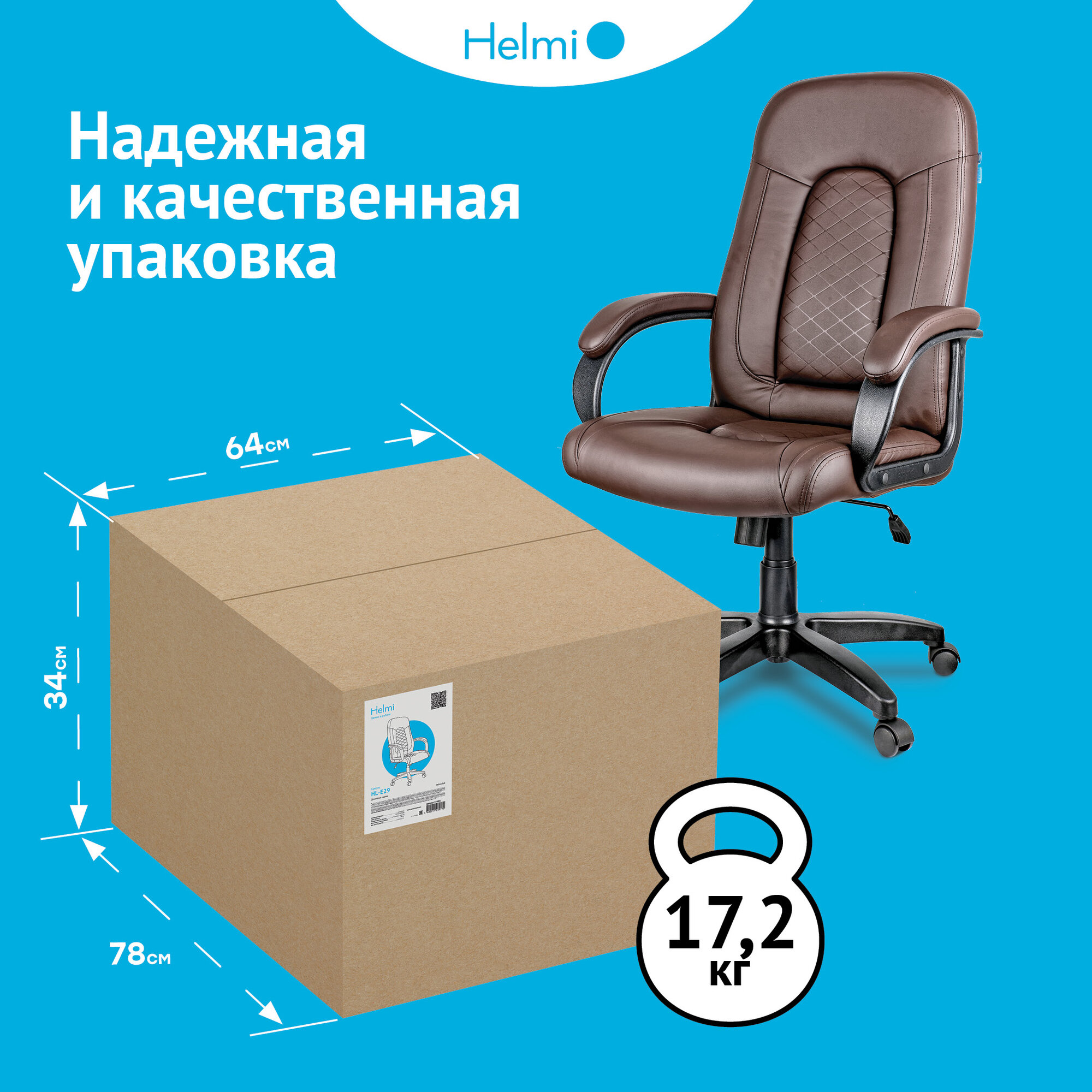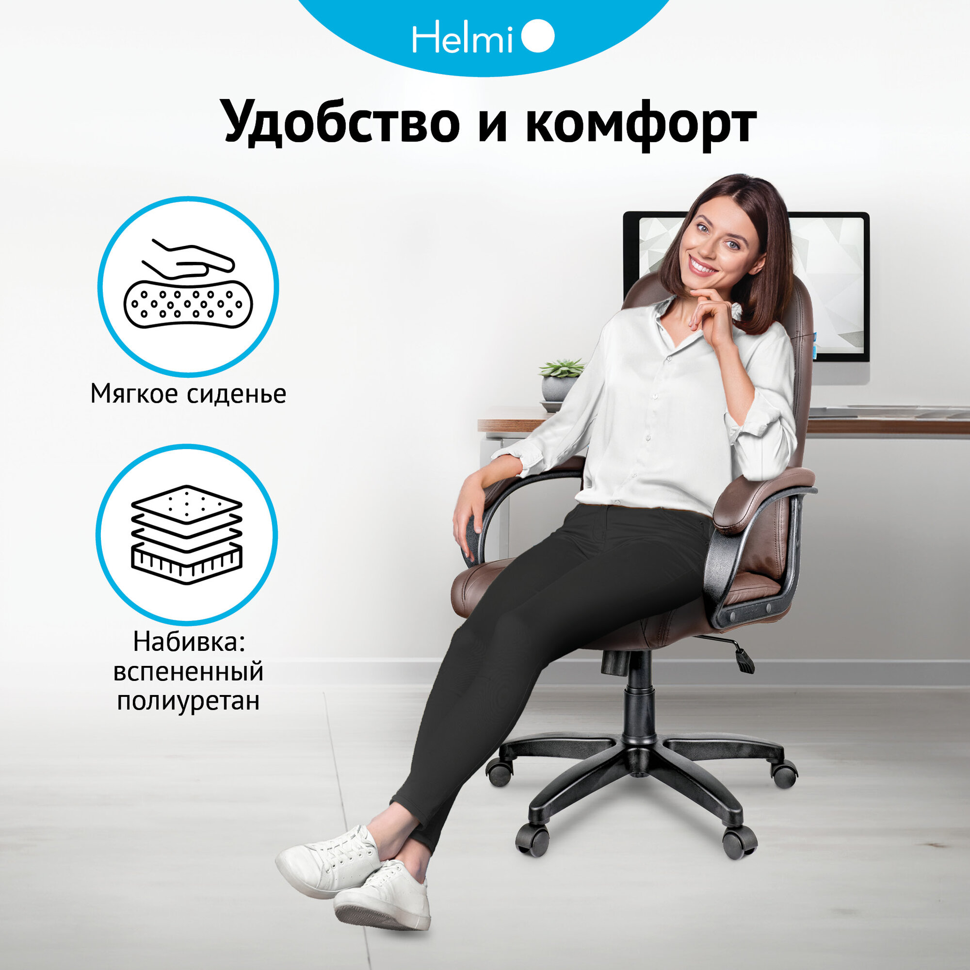 Кресло руководителя Helmi HL-E29 «Brilliance», экокожа коричневая, мягкий подлокотник