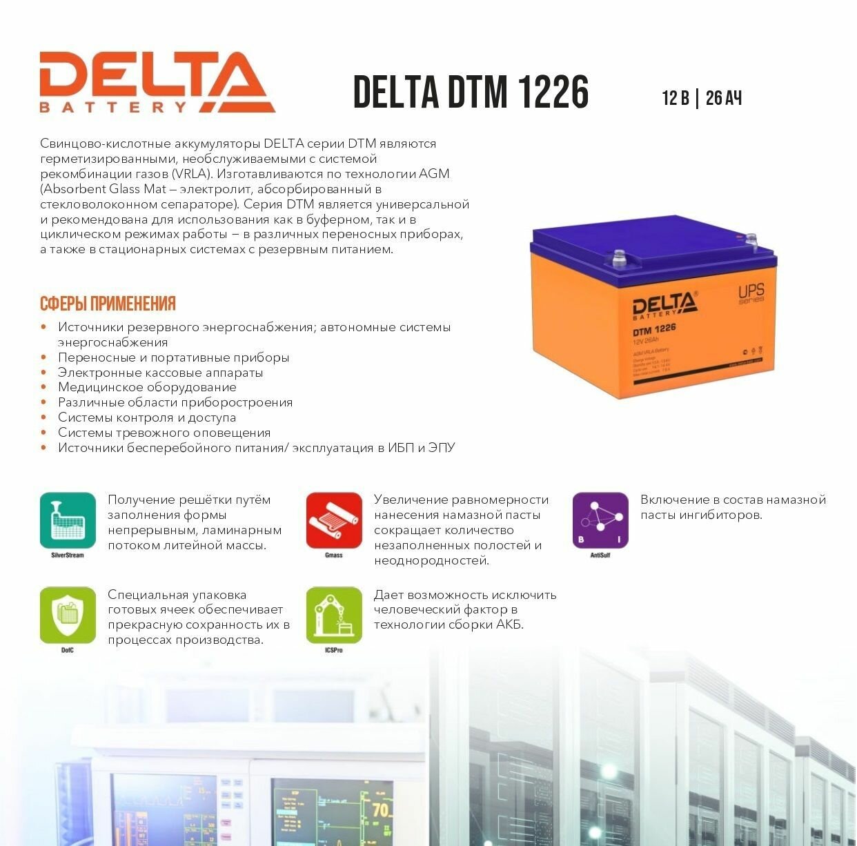 Аккумулятор Asterion DTM 1226 12В 26Ач для ИБП, кассы, для детского электромобиля, мотоцикла, эхолота, освещения, сигнализации интересное: