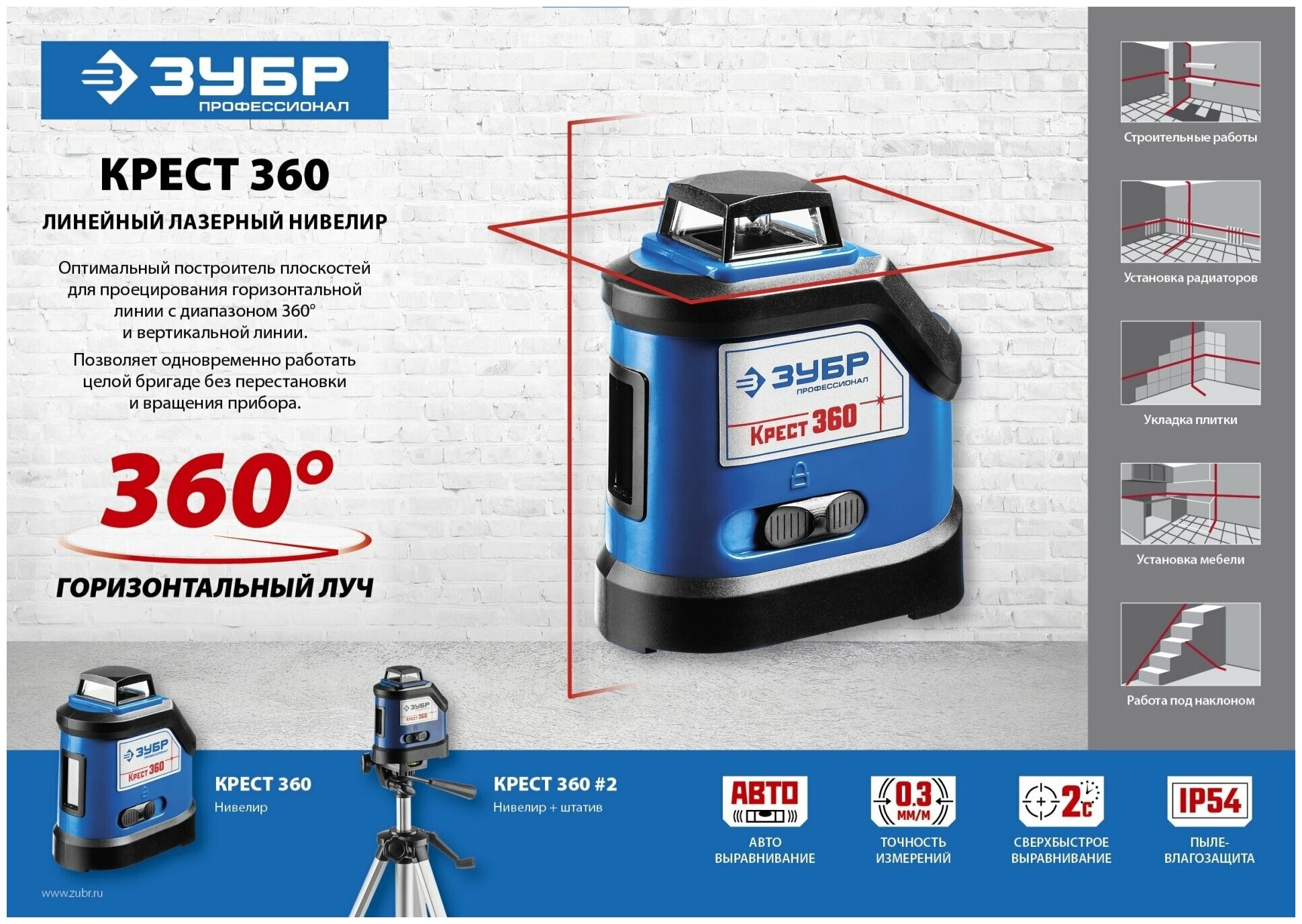 Лазерный нивелир Зубр профи Крест-360 (арт. 34906)