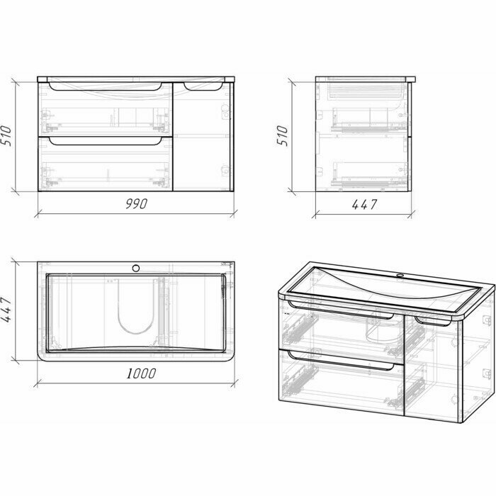Тумба подвесная с двумя ящиками Grossman Адель-100 см под раковину Aдель-100