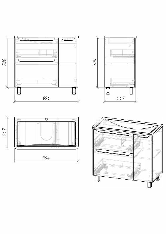 Тумба напольная с 2 ящиками Grossman Адель-100 см под раковину Aдель-100