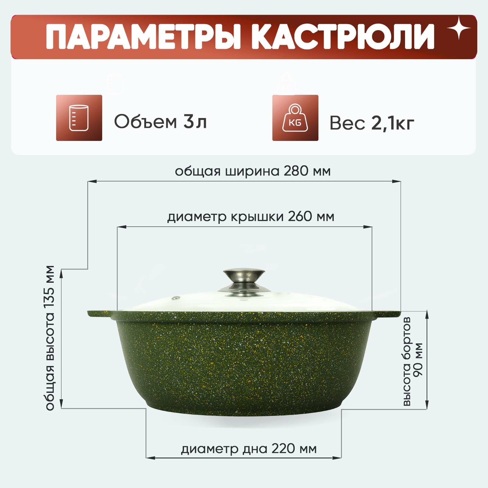 Кастрюля-жаровня алюм, антиприг, 3 л, с крыш, крышка стекло, Kukmara, Trendy style, ж31tsml, малахит