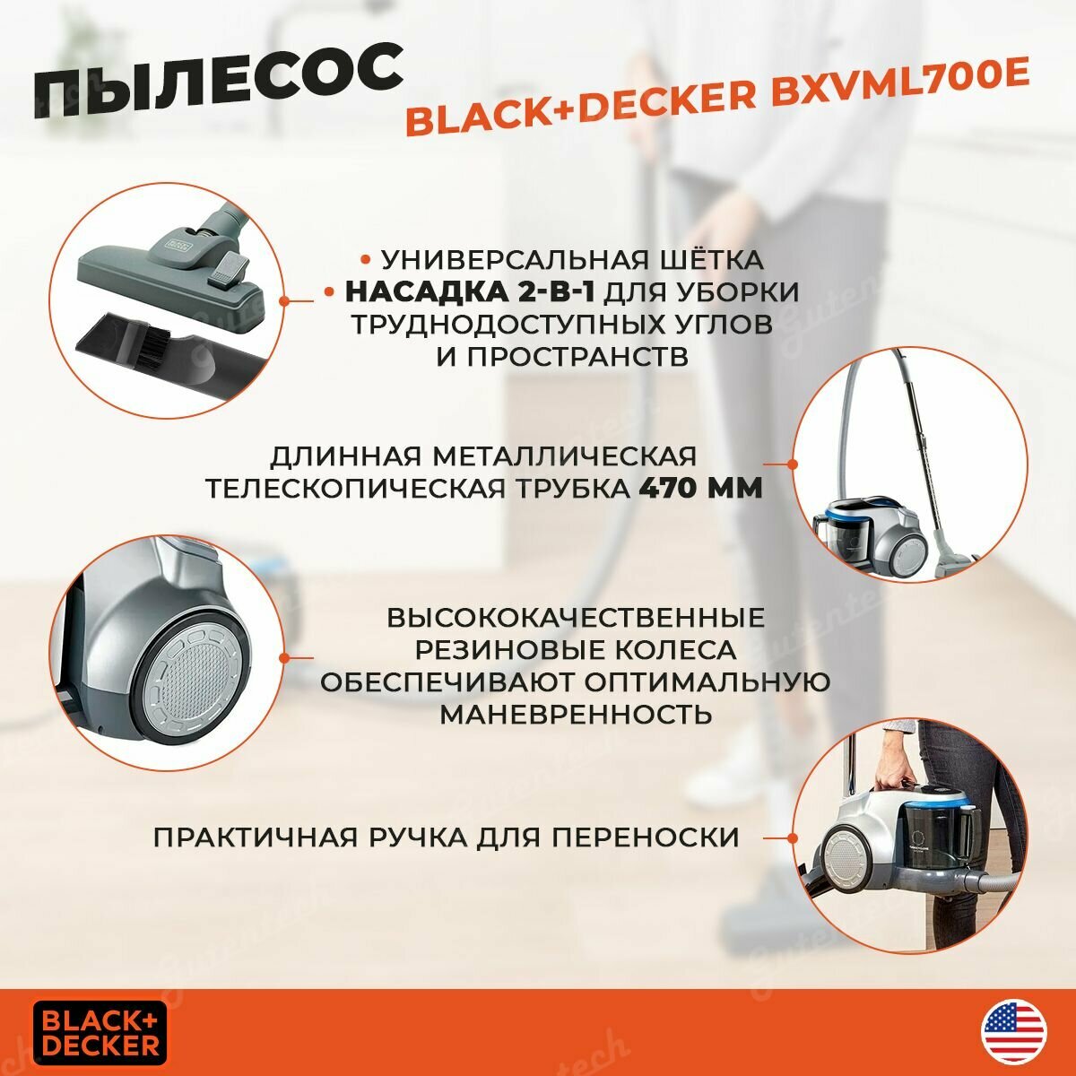 Пылесос напольный Black+Decker BXVML700E интересное: