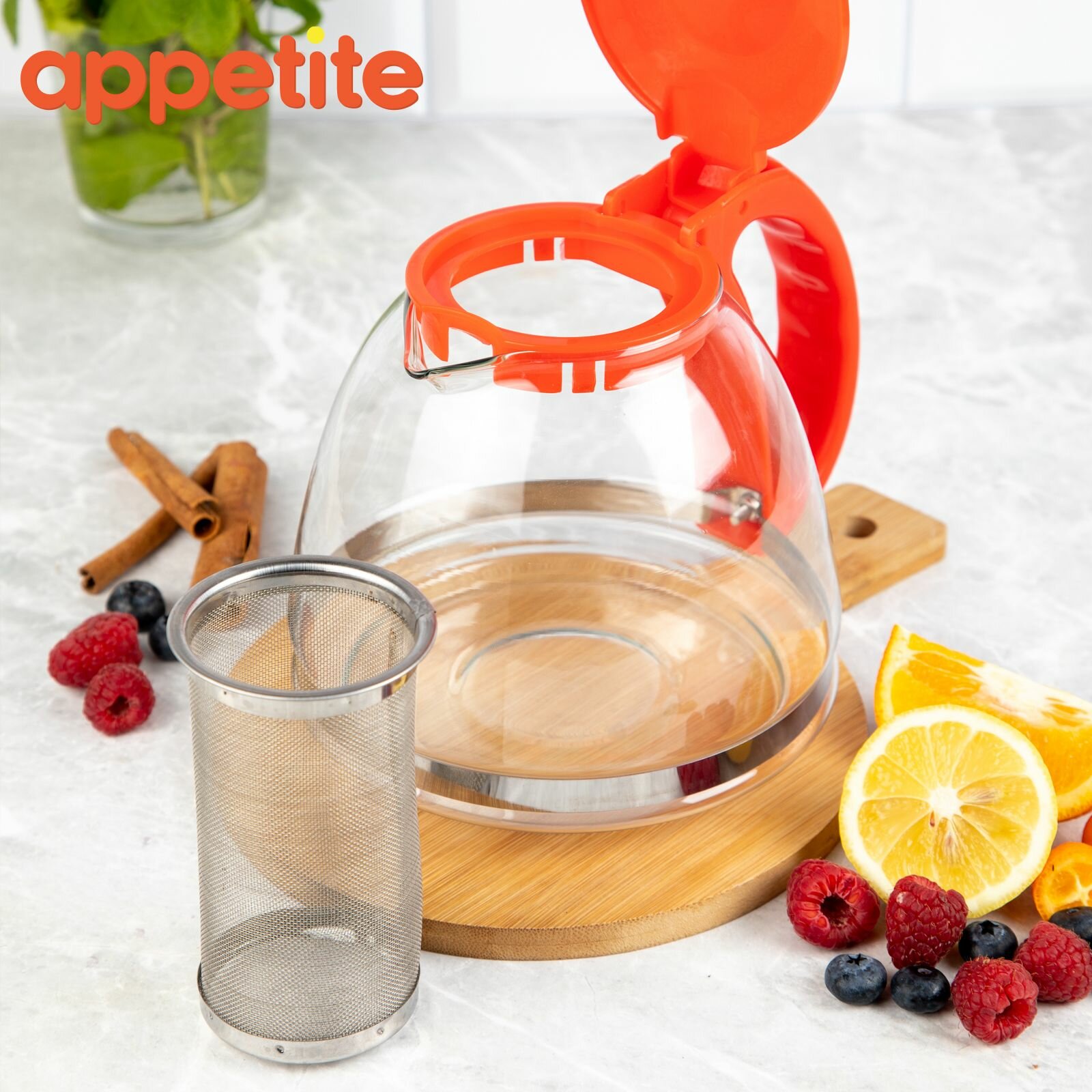 Чайник заварочный стеклянный с фильтром 1300 мл ТМ Appetite красный интересное: