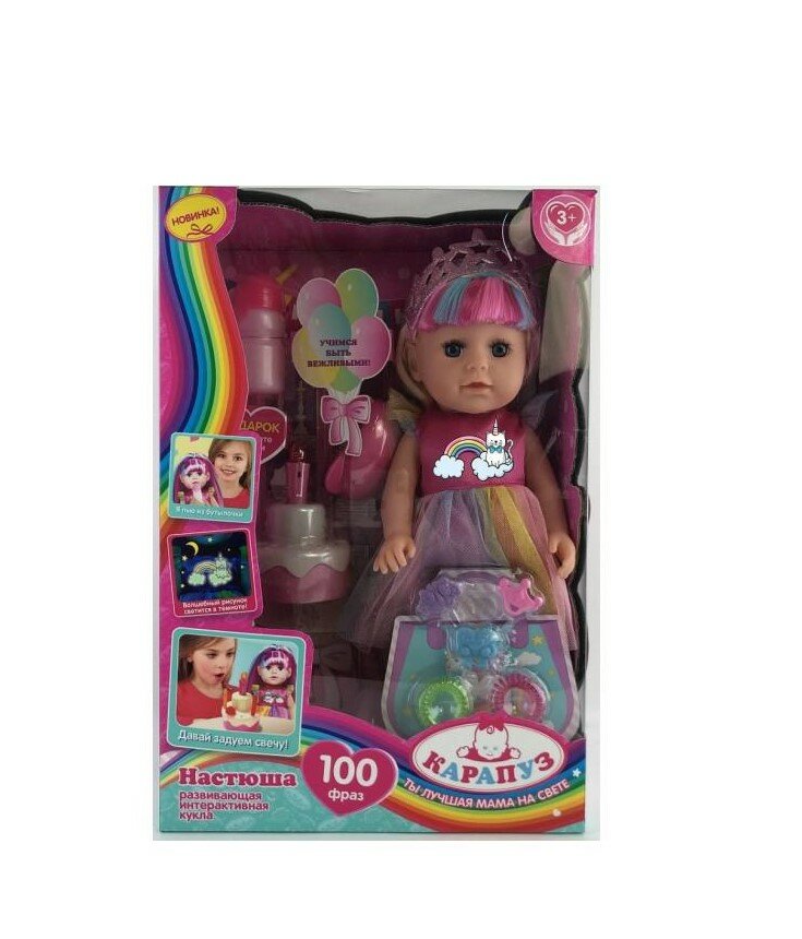 Кукла интерактивная настюша 40 см 100 фраз карапуз Y40SBB-DP-CAKE