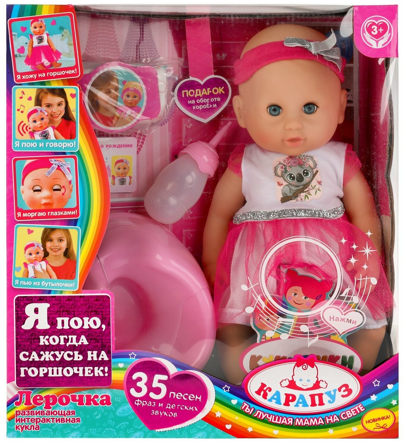 Карапуз Пупс Лерочка 40 см, пьет, писает, моргает Карапуз BAE-6099-C-POTTY-RU