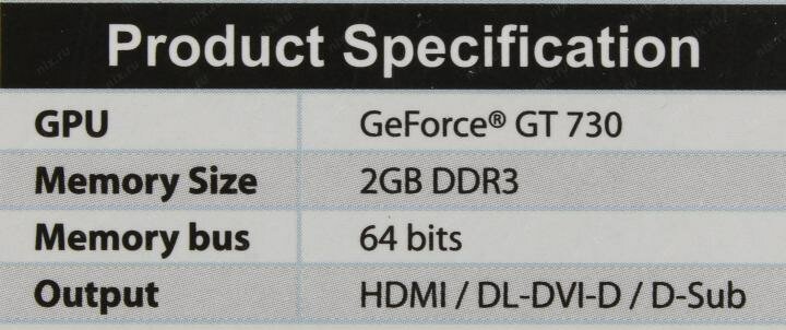 | Название видеокарты | NVIDIA GeForce GT 730 |