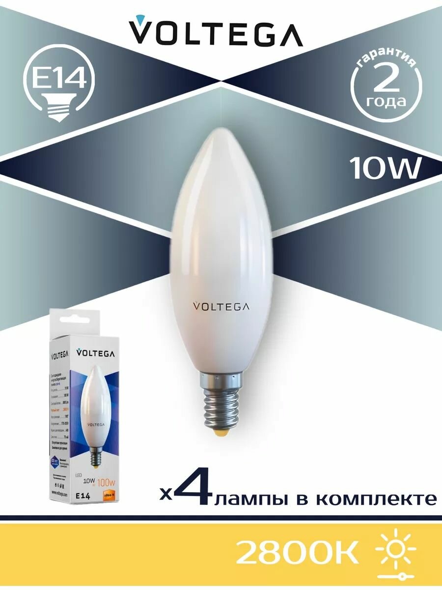 Лампочка светодиодная E14 форма свеча матовая 10W теплый свет Voltega Simple Candle 2800K упаковка 6 шт.