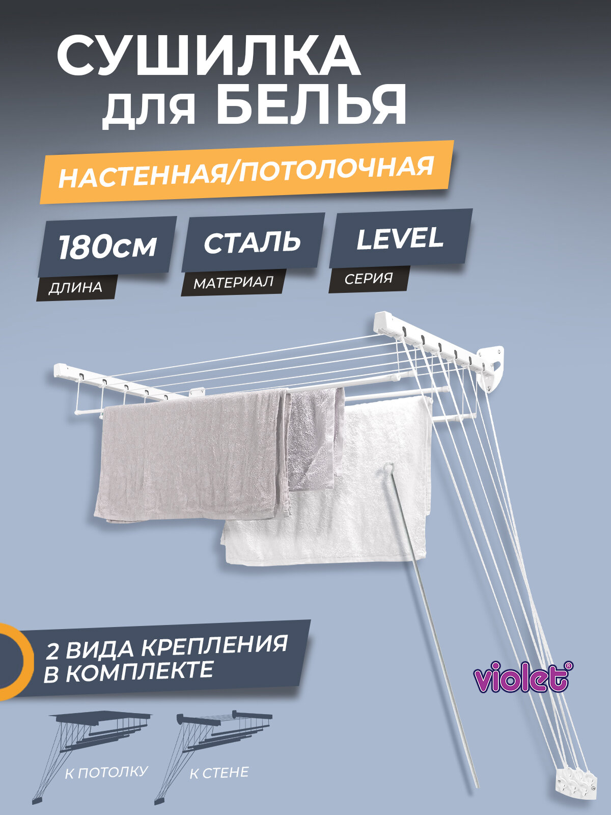 Сушилка для белья VIOLET "Level 120" 7,2м 33120 (настенная/потолочная)