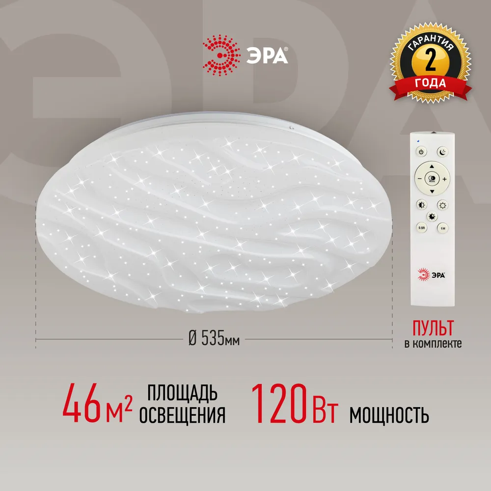 Купить Светильник потолочный светодиодный ЭРА SPB-6 Wave с пультом ДУ классика, белый, 3000-6500К, 120 Вт