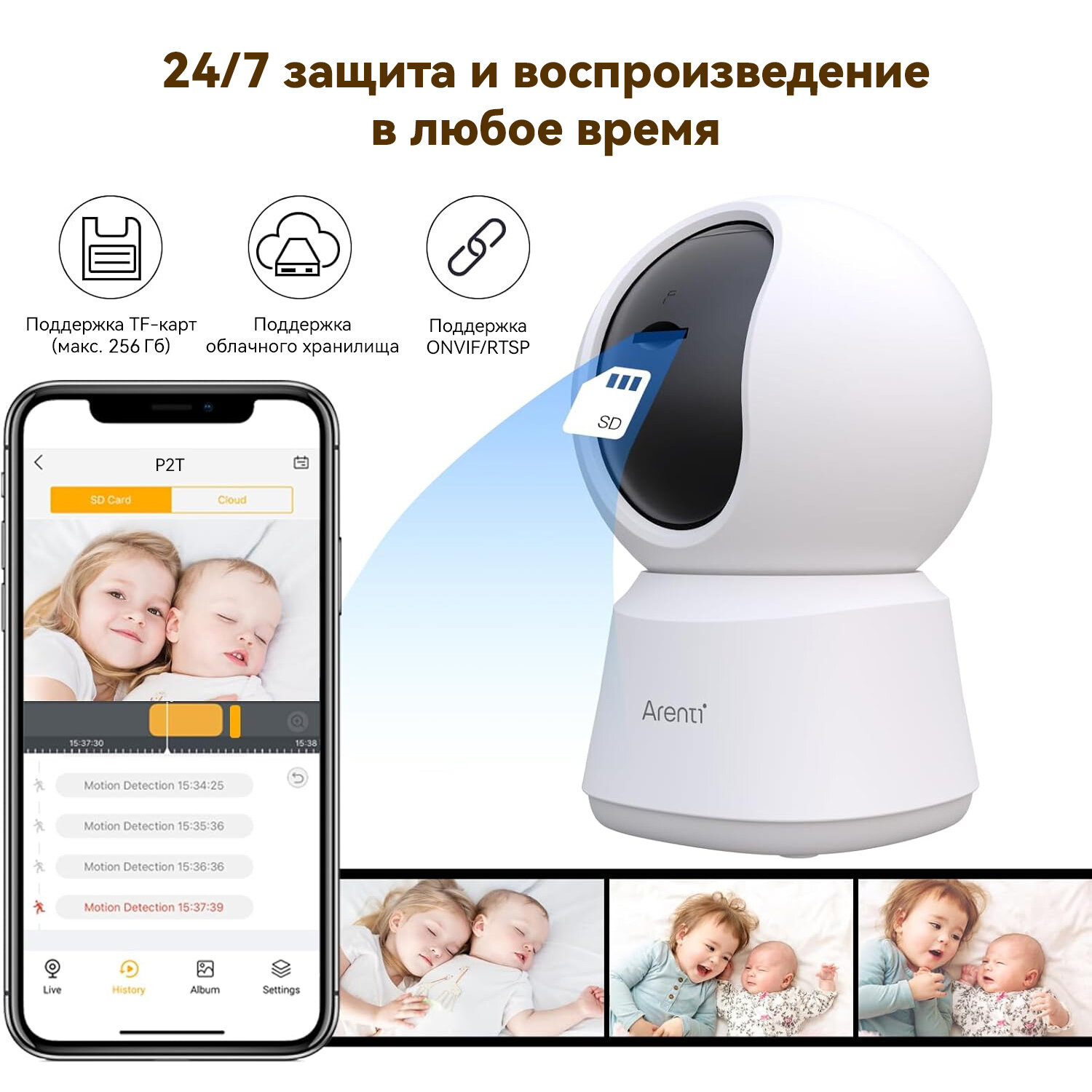 WiFi IP камера видеонаблюдения для дома, 3Мп/2K, Arenti P2T, с углом обзора 360 градусов, ночной съемкой и датчиком движения интересное: