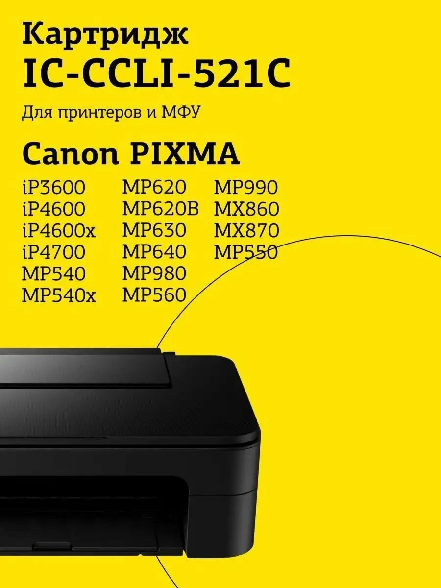 IC-CCLI-521C Картридж для Canon PIXMA iP3600, 4600, 4700, MP540, 620, 630, 980, голубой, с чипом