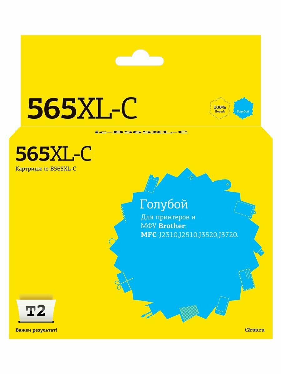 T2 LC-565XLC Картридж IC-B565XL-C для Brother MFC-J2310 J2510 J3520 J3720, голубой, с чипом