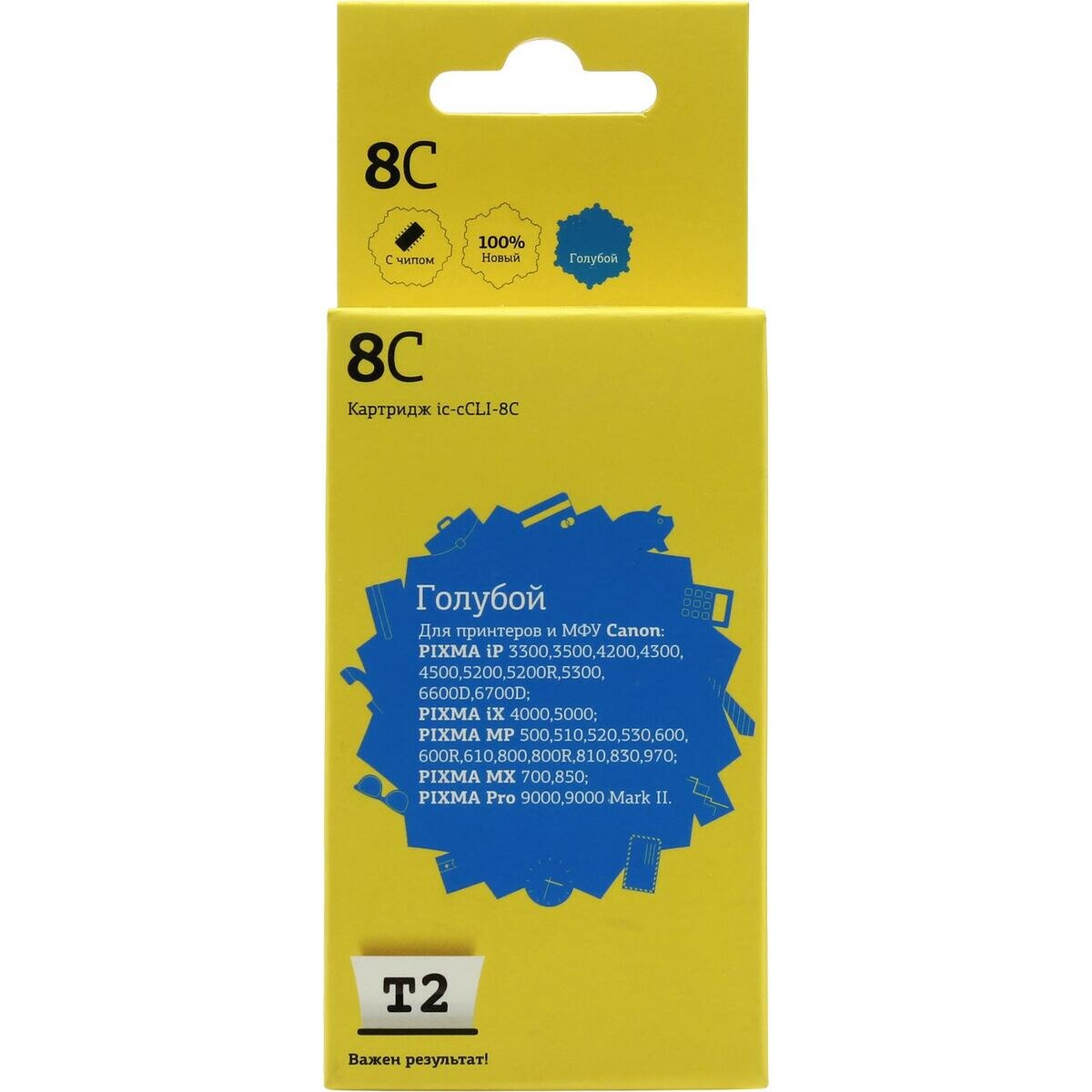 IC-CCLI-8C Картридж T2 для Canon PIXMA iP4200/4300/5200/Pro9000/MP500/600, голубой, с чипом