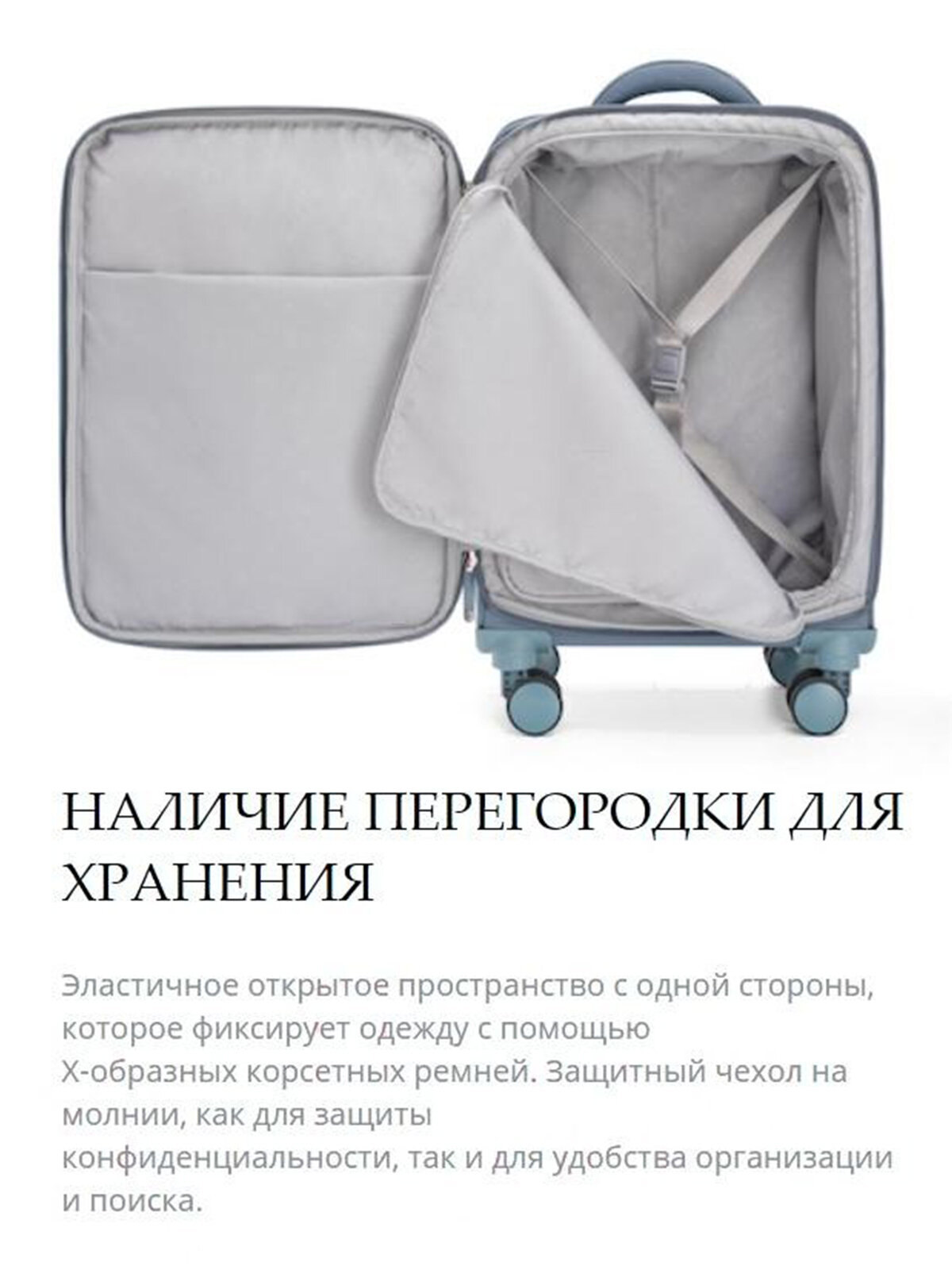 Чемодан Xiaomi NINETYGO Danube 20", серый, пластиковый, 4 колеса, блокировка замков для безопасности