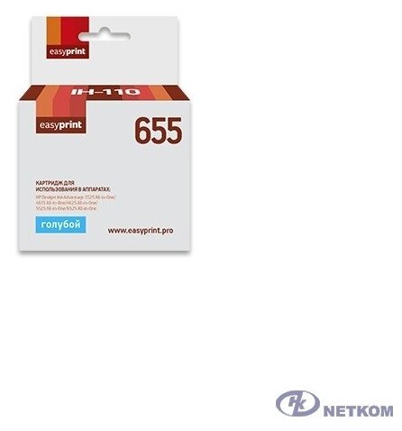 Easyprint Расходные материалы CZ110AE Картридж IH-110 655, для HP CZ110AE DeskJet IA 3525 4615 5525 6525, голубой, с чипом