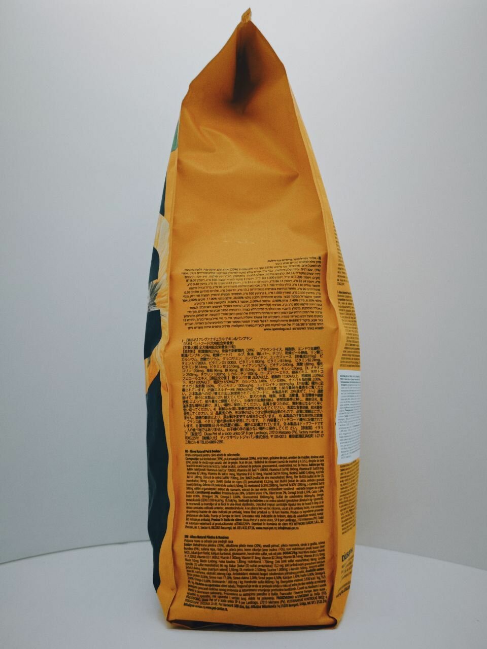 | Пищевая ценность | сырой протеин – 28,00%, сырой жир – 17,00%, сырая клетчатка – 2,00%, сырая зола – 6,50%, кальций – 1,40%, фосфор – 0,90%, Омега-6 – 2,00%, Омега-3 – 0,60%, глюкозамин – 1000 мг/кг, хондроитин сульфат – 800 мг/кг |