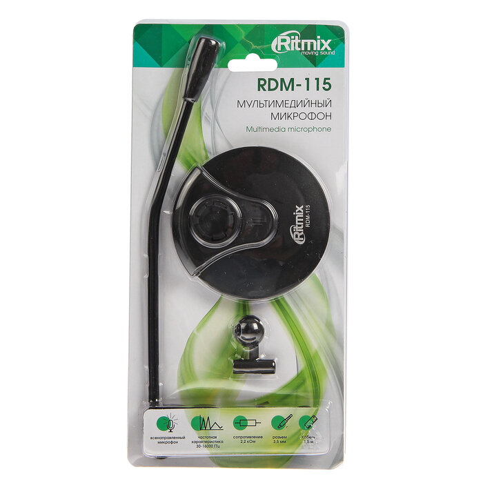 Микрофоны RITMIX Микрофон Ritmix RDM-115, на подставке, разъем 3.5 мм, кабель 1.5 м