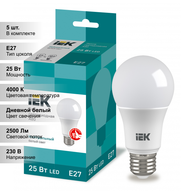 (6 шт.) Светодиодная лампочка IEK A80 25Вт 230В 4000К E27