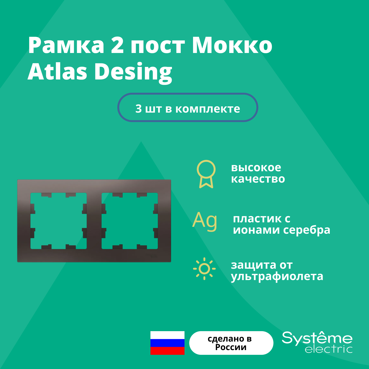 Рамка Systeme Electric Atlas Design двойная для розеток и выключателей мокко ATN000602 - 3 шт.
