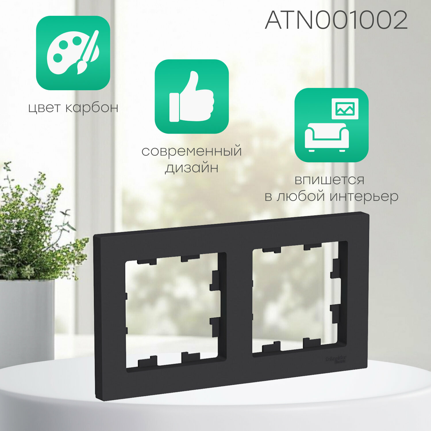 Рамка Systeme Electric Atlas Design двойная для розеток и выключателей черный матовый-карбон - 2 шт.