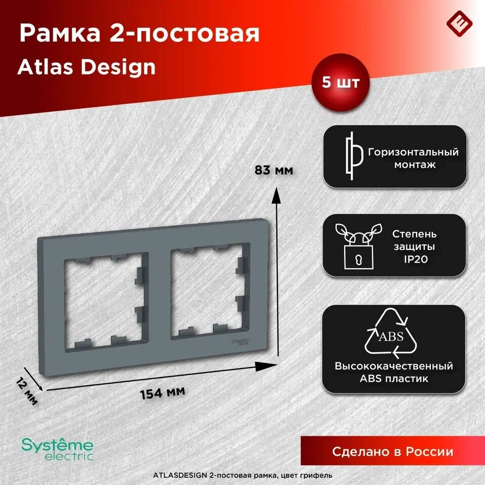 Рамка Systeme Electric Atlas Design двойная для розеток и выключателей грифель ATN000702 - 3 шт.