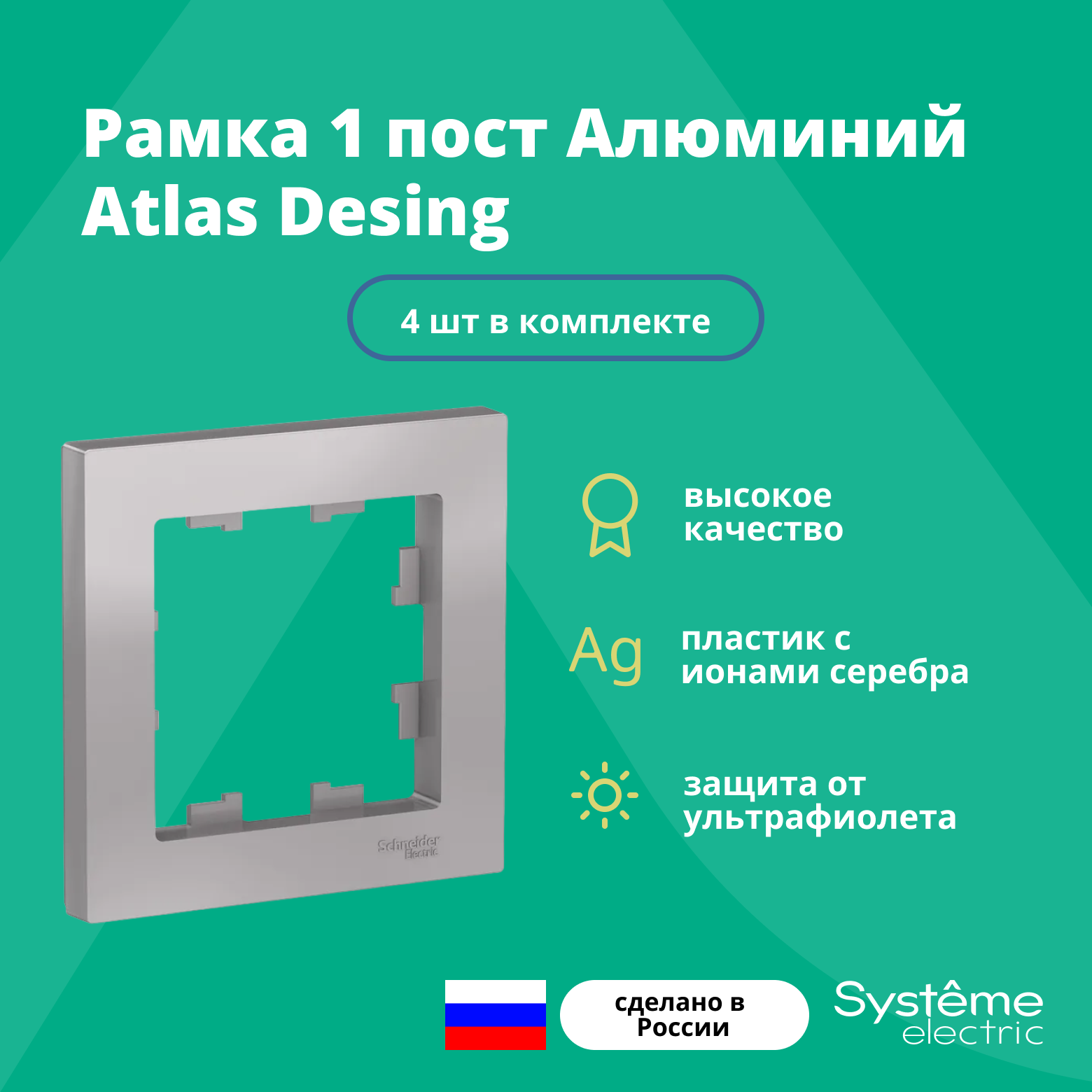 Купить Рамка одинарная для розеток и выключателей Systeme Electric Atlas Design алюминиевый ATN000301 - 4 шт.