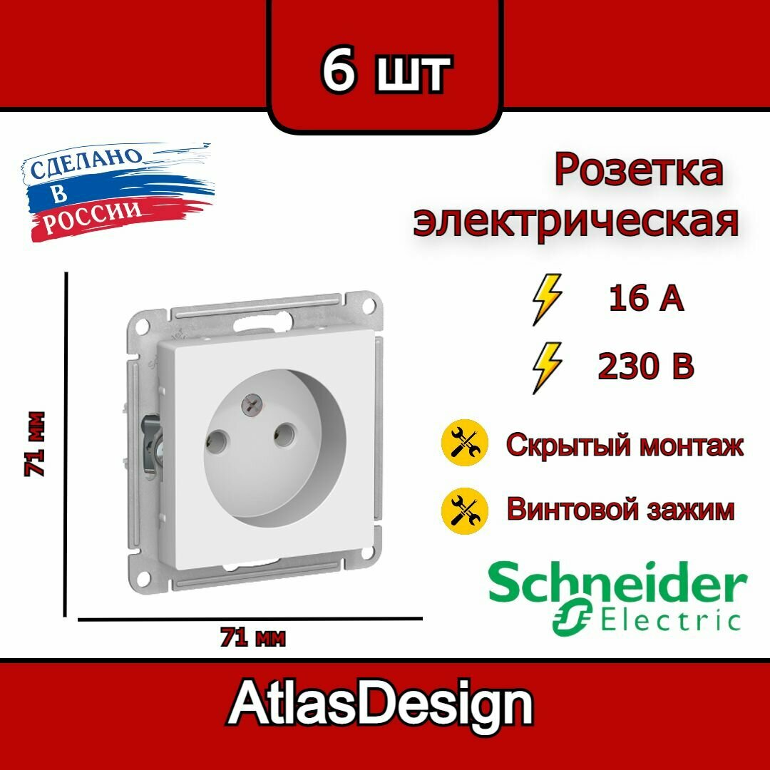 Розетка без заземления, белая Schneider Electric AtlasDesign (комплект 6шт)