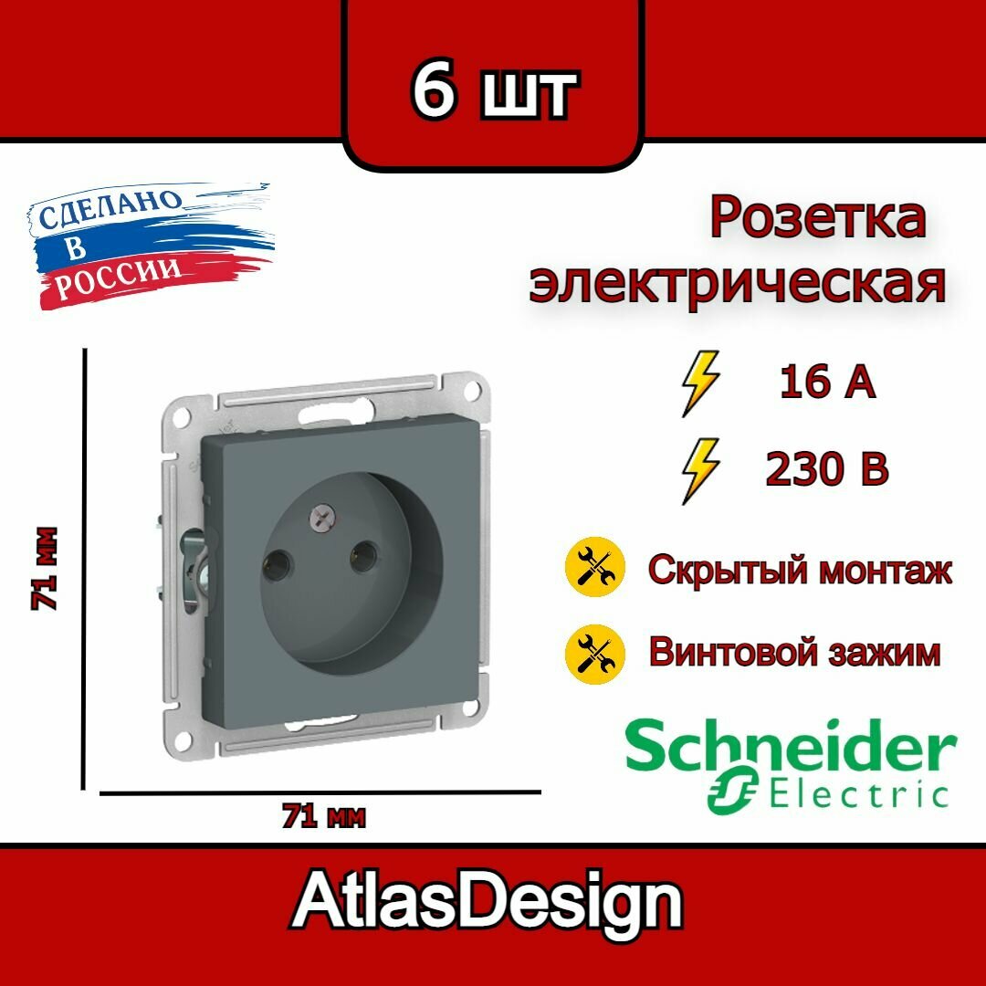Купить Розетка без заземления, грифель Schneider Electric AtlasDesign (комплект 6шт)
