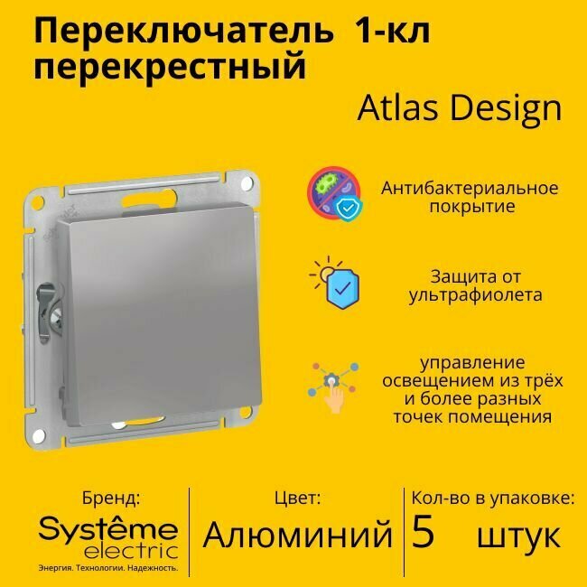 Купить Переключатель перекрестный Systeme Electric Atlas Design 1-клавишный, 10А, 10 AX, Алюминий - 5 шт