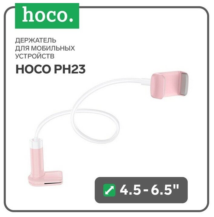 Держатель настольный HOCO, PH23, Balu, для смартфона 4,5"-6,5", силикон, металл, гибкая нога 70 см, цвет: розовый, белая вставка
