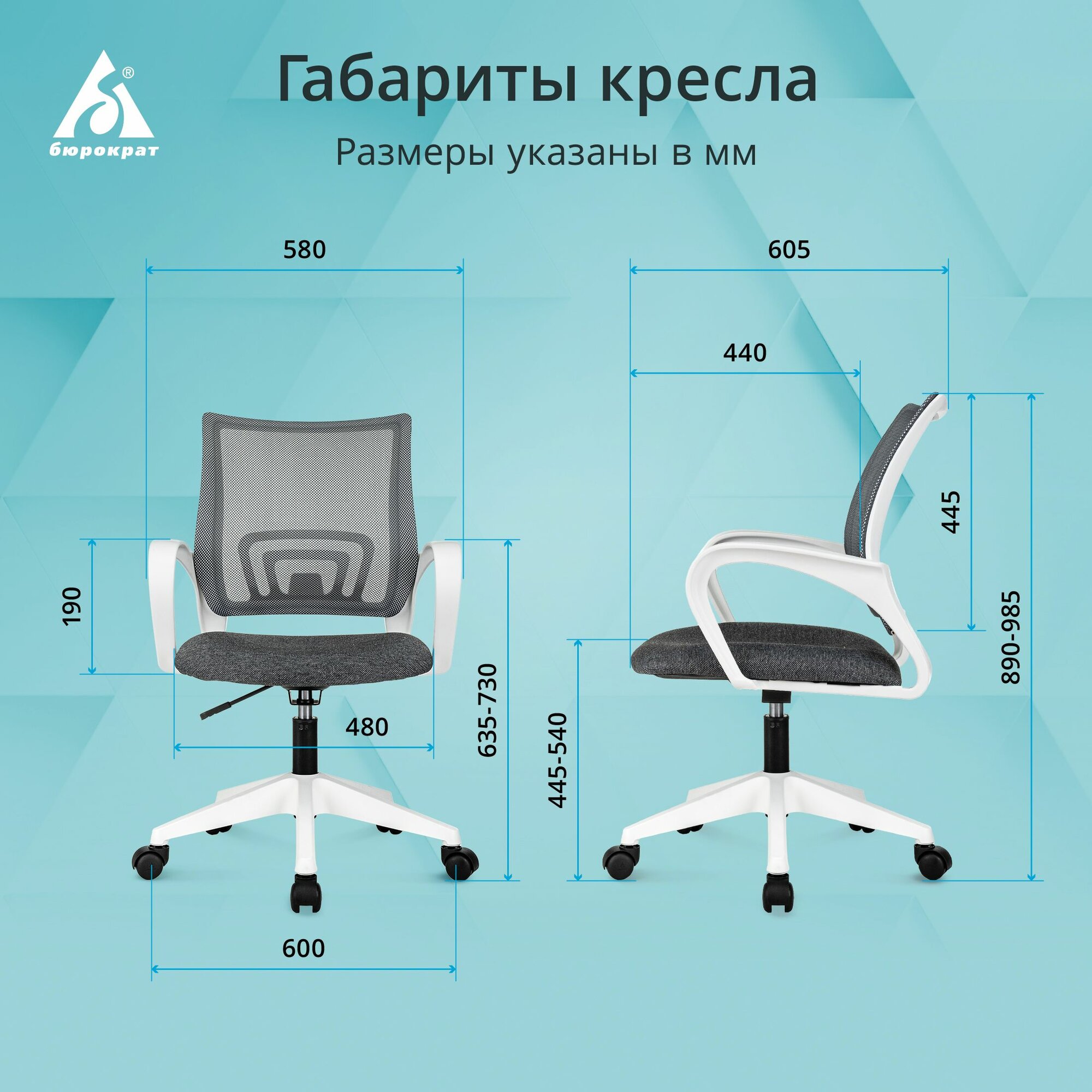 Кресло Бюрократ CH 696, на колесиках, сетка/ткань, серый [ch 696 #g]
