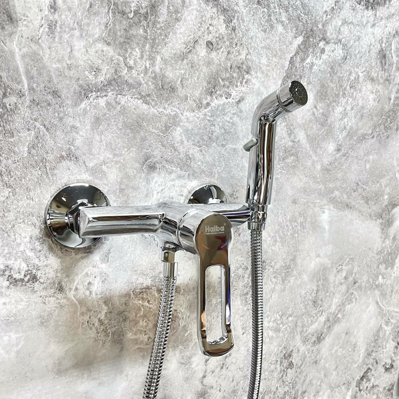 Смеситель Haiba HB55556 с гигиеническим душем, настенный с аксессуарами, цвет хром.