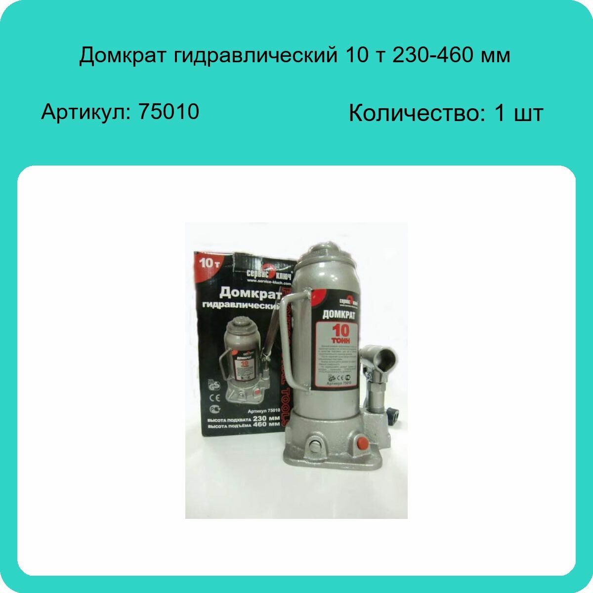 Домкрат 10т гидравлический высота 230-460; Сервис Ключ