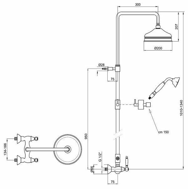 | Дополнительная информация | высота стойки для душа: 1340 мм; диаметр верхнего душа: 200 мм |