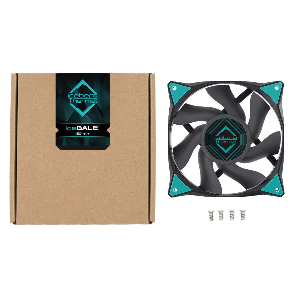 | Комплектация | Вентилятор Iceberg Thermal IceGALE 120 Teal, IceGALE_120mm_TEAL - 1 Шт. винт - 4Шт |