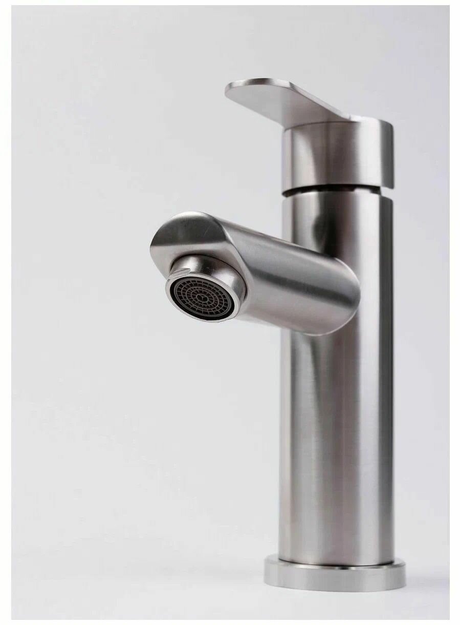 Дизайнерский смеситель для раковины / однорычажный / нержавеющая сталь / Fashun / сатин серый