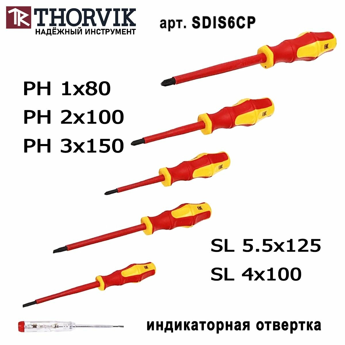 Набор отверток 6 шт. THORVIK диэлектрических VDE SDIS6CP
