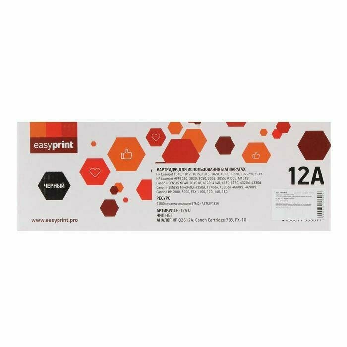 Картридж лазерный Easyprint LH-12A U (Q2612A/2612A/Q2612/Canon 703/FX 10/FX10/12A) для принтеров HP / Canon, черный
