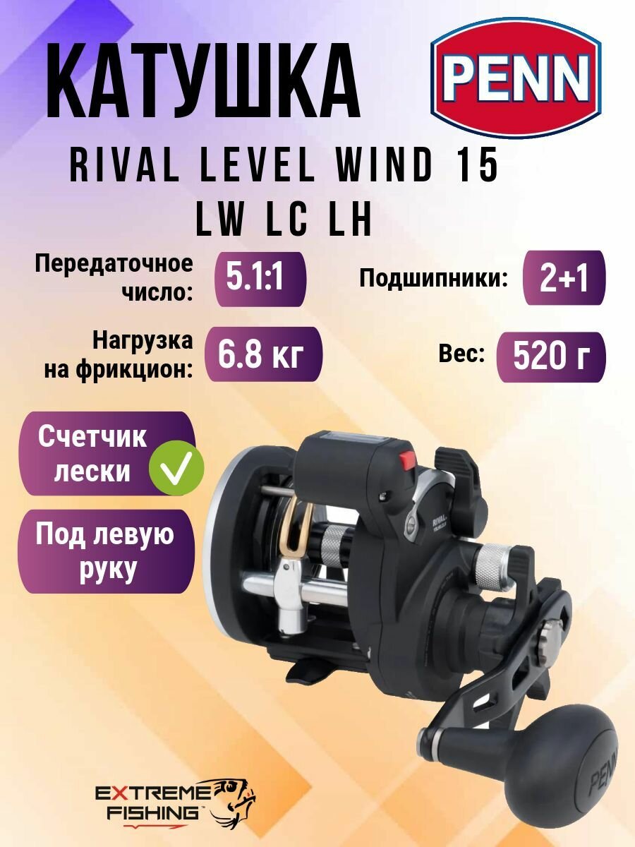 Катушка мультипликаторная со счетчиком лески Penn Rival Level Wind 15 LW LC LH интересное: