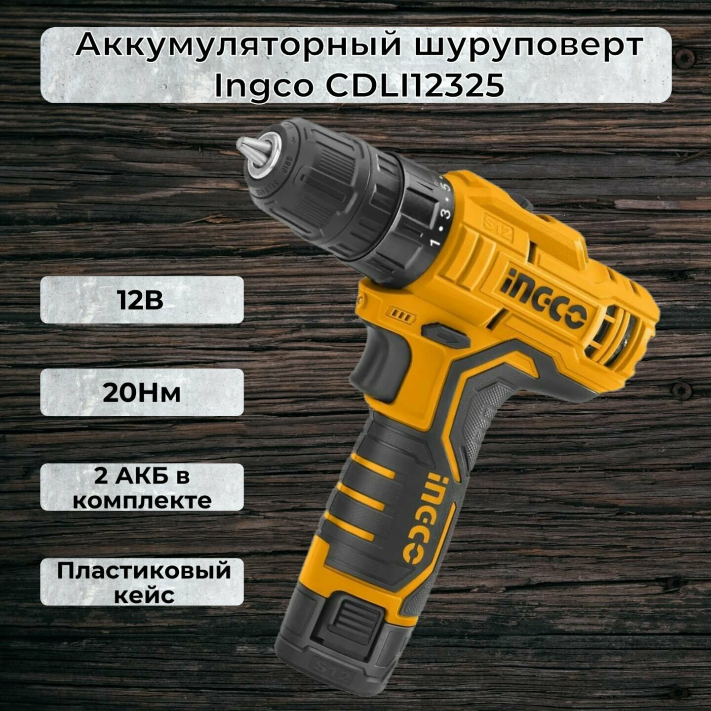 Аккумуляторный шуруповерт 12В 20Нм 15+1 CDLI12325 INGCO
