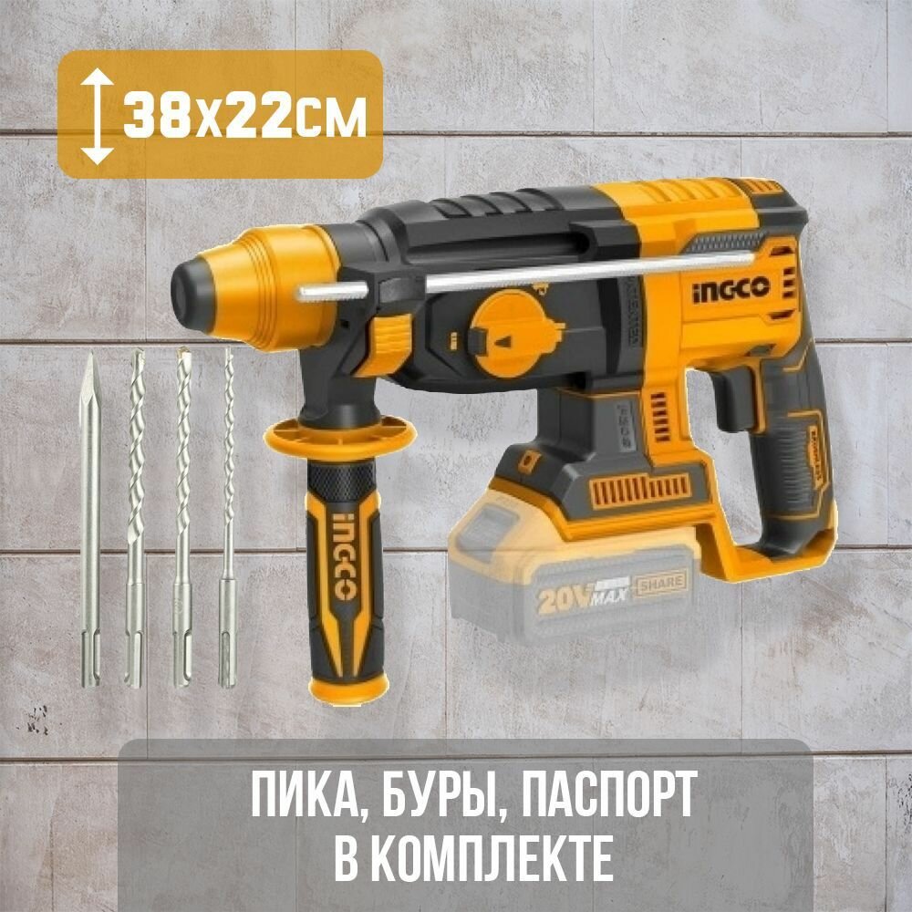 Аккумуляторный перфоратор INGCO CRHLI20228 INDUSTRIAL без АКБ и ЗУ электроинструмент, подарок на день рождения мужчине, любимому, папе, дедушке, парню