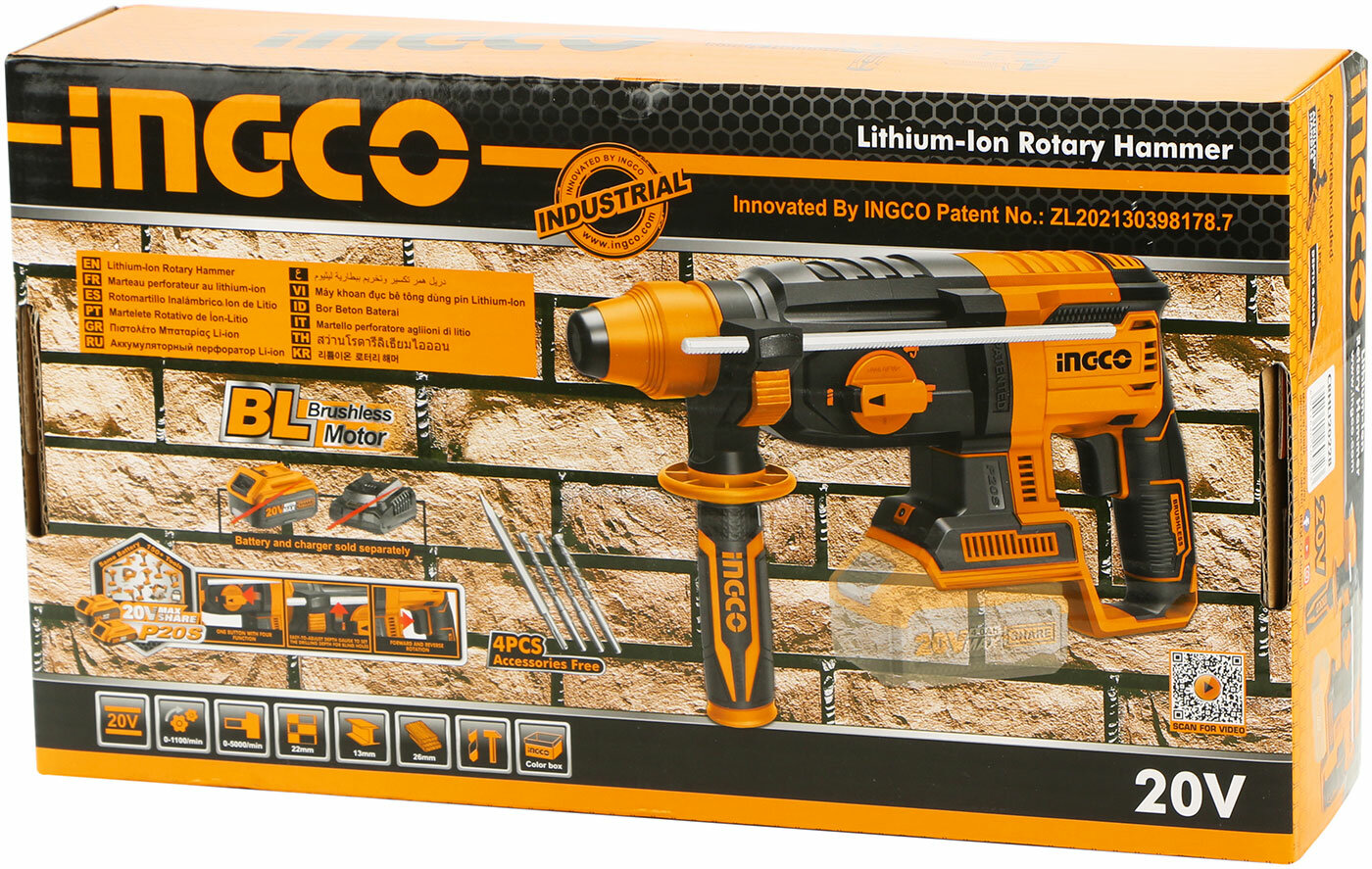 Аккумуляторный перфоратор BL 20В 2Дж INGCO CRHLI20228 INDUSTRIAL